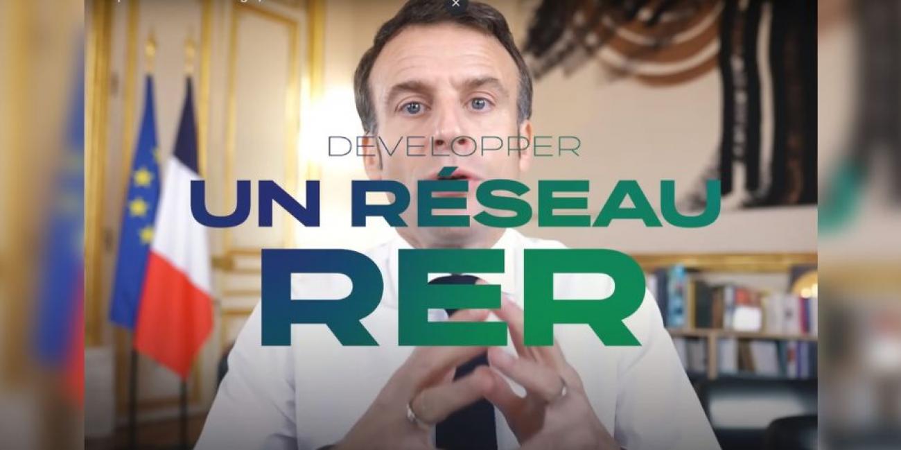 "Pour tenir notre ambition écologique, je veux qu'on se dote d'une grande ambition nationale : dans dix grandes agglomérations, dans dix métropoles françaises, de développer un réseau de RER, un réseau de trains urbains", a-t-il expliqué dans une séquence postée sur YouTube, dans laquelle il répond à des questions d'internautes sur l'écologie.
